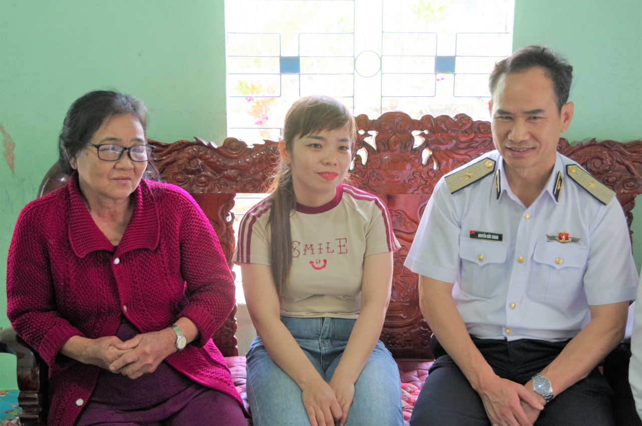 Chuẩn Đô đốc Nguyễn Hữu Thoan, Chính ủy Học viện thăm hỏi, tặng quà gia đình cách mạng (bà Phan Thị Bớt, thôn Vĩnh Cát, xã Suối Hiệp, Khánh Hòa)