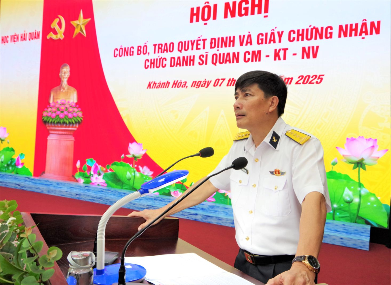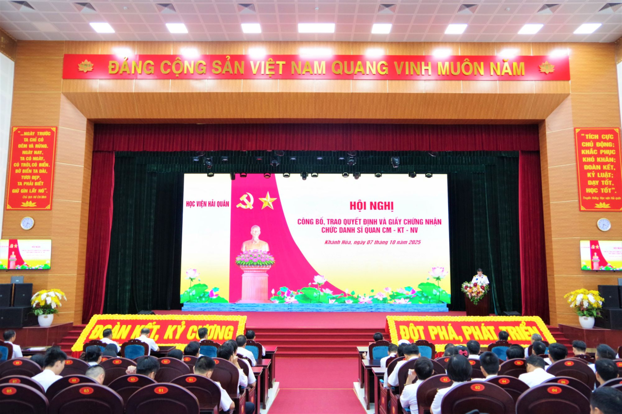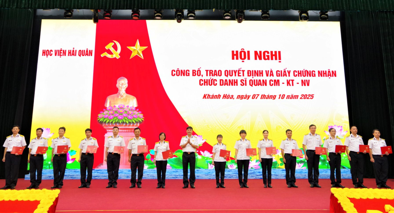 Học viện Hải quân đã trao quyết định công nhận và giấy chứng nhận chức danh "Giảng viên cao cấp" năm 2024 cho 3 đồng chí; "Giảng viên chính" năm 2024, 2025 cho 16 đồng chí; "Giảng viên" năm 2025, 2026 cho 28 đồng chí.