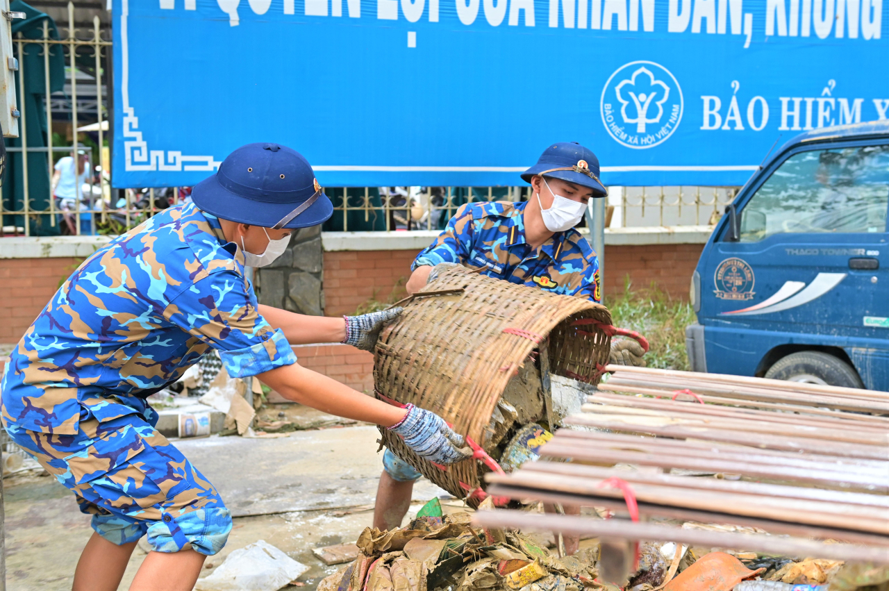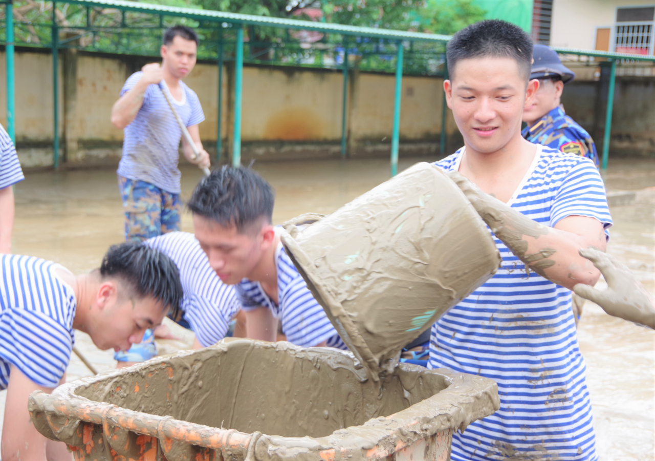 Theo ghi nhận của phóng viên, ngay từ sáng sớm, lực lượng của Học viện Hải quân đã được phân chia theo các hướng, xuống các khu dân cư bị ngập sâu, ưu tiên giúp đỡ những gia đình neo đơn, gia đình chính sách và các trường học, công trình công cộng. Những bóng áo xanh lội bùn, dầm mưa, chạy đua với thời gian, dọn dẹp bùn đất, vận chuyển đồ đạc cho bà con... giữa thời điểm khó khăn, càng làm ấm áp thêm tình cảm quân dân sau cơn lũ dữ.