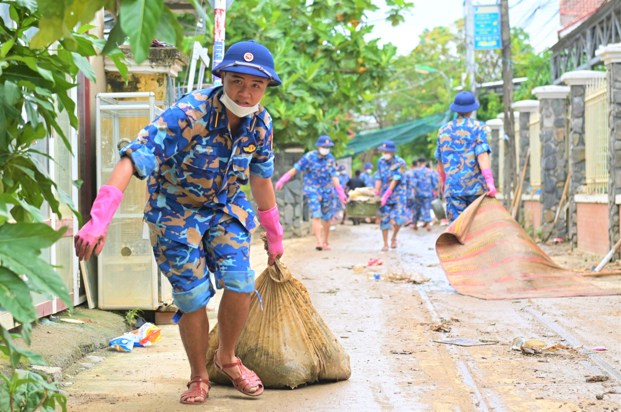 Giữa khu dân cư còn ngổn ngang rác, bùn đất, Thượng sĩ Nguyễn Tấn Trọng, Học viên, Tiểu đoàn 1, Học viện Hải quân vừa nghỉ tay lau mồ hôi, vừa tâm sự: "Nhìn cảnh người dân khổ cực sau lũ, tôi nghĩ mình còn trẻ, còn khỏe, được rèn luyện trong môi trường quân đội, mình phải có trách nhiệm dốc sức vì nhân dân. Mệt một chút cũng không sao, chỉ mong giúp người dân sớm ổn định cuộc sống".