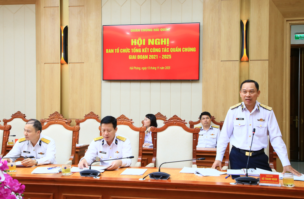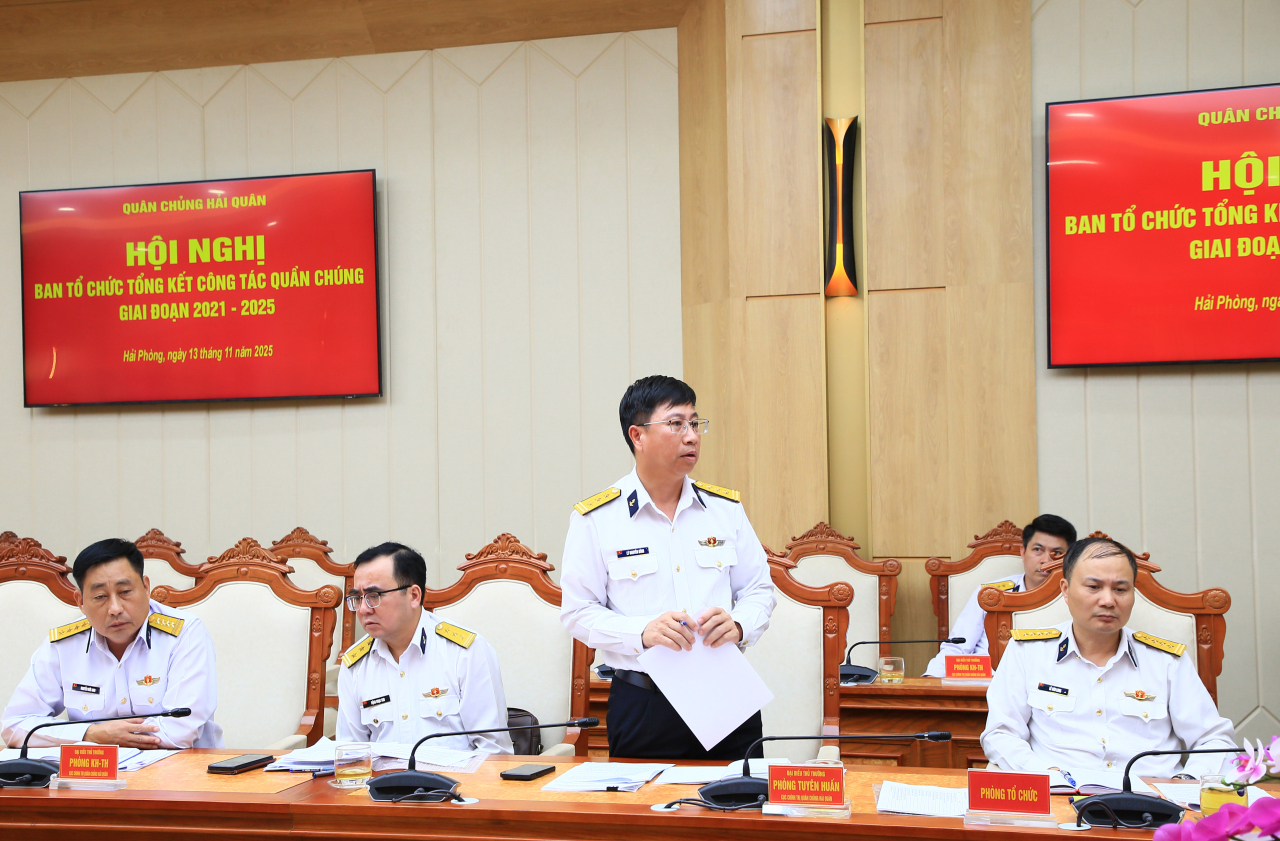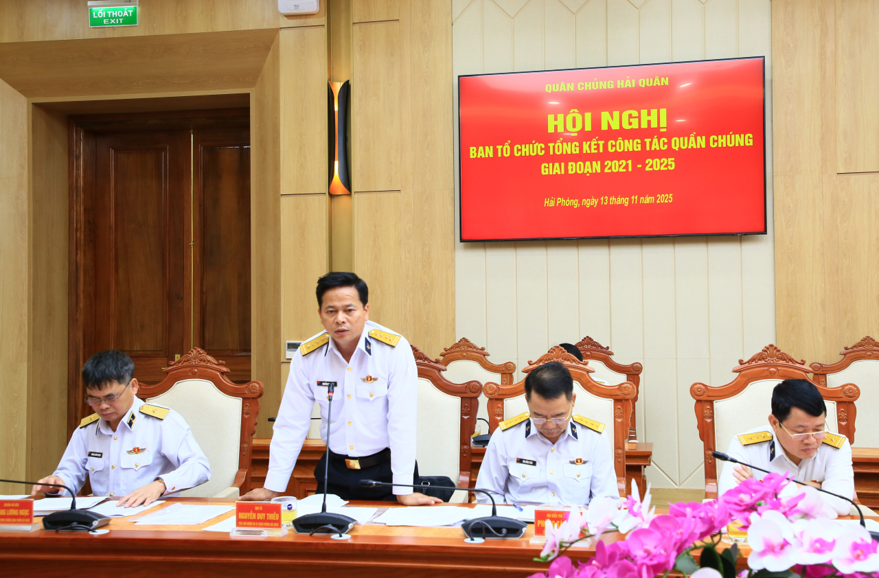 HQVN - Chiều 13/11, tại Hải Phòng, Quân chủng Hải quân tổ chức Hội nghị Ban tổ chức tổng kết công tác quần chúng giai đoạn 2021-2025. Chuẩn Đô đốc Đỗ Văn Yên, Phó Chính ủy Hải quân chủ trì hội nghị.