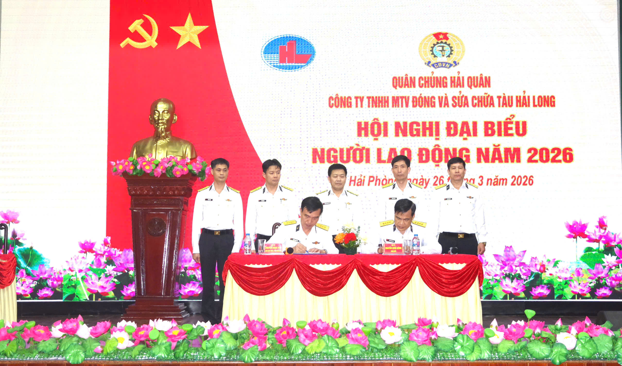 HQ Online - Ngày 26/3, tại Hải Phòng, Công ty TNHH MTV Đóng và sửa chữa tàu Hải Long (Nhà máy X46), Cục Hậu cần - Kỹ thuật Hải quân tổ chức Hội nghị đại biểu người lao động năm 2026. Dự, chỉ đạo hội nghị có Đại tá Nguyễn Thanh Tùng, Phó Chủ nhiệm Chính trị Cục Hậu cần - Kỹ thuật.