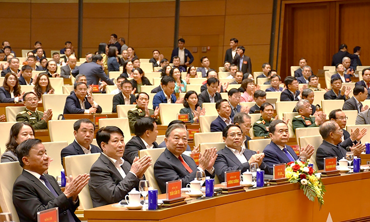 Tổng Bí thư Tô Lâm và các đại biểu dự tại điểm cầu Nhà Quốc hội