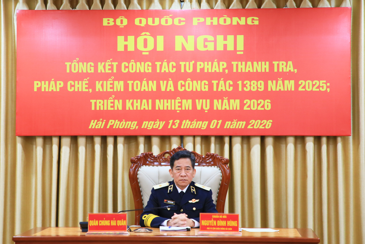 HQ Online - Sáng 13/1, tại Hà Nội, Bộ Quốc phòng tổ chức Hội nghị tổng kết công tác pháp chế, thanh tra, tư pháp, kiểm toán và công tác 1389 trong Quân đội năm 2025; triển khai nhiệm vụ trọng tâm năm 2026. Hội nghị được tổ chức theo hình thức trực tiếp tại điểm cầu Bộ Quốc phòng và trực tuyến đến 66 điểm cầu trong toàn quân. Thượng tướng Võ Minh Lương, Ủy viên Ban chấp hành Trung ương Đảng, Ủy viên Thường vụ Quân ủy Trung ương (QUTƯ), Thứ trưởng Bộ Quốc phòng - Trưởng ban Chỉ đạo 1389 Bộ Quốc phòng chủ trì hội nghị.