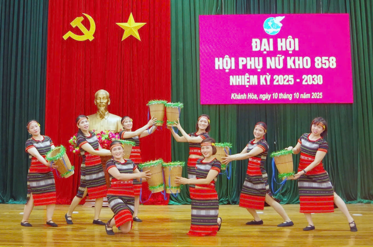 Tiết mục văn nghệ chào mừng đại hội do cán bộ, hội viên phụ nữ Kho 858 biểu diễn