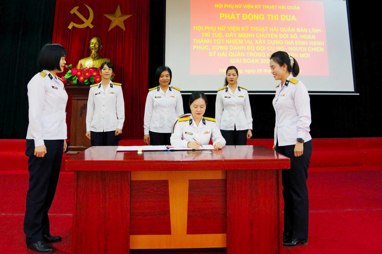 HQ Online - Ngày 26/3, Hội Phụ nữ Viện Kỹ thuật Hải quân tổ chức Lễ phát động phong trào thi đua giai đoạn 2025–2030 và năm 2026 với chủ đề: “Phụ nữ Viện Kỹ thuật Hải quân bản lĩnh - trí tuệ; đẩy mạnh chuyển đổi số, hoàn thành tốt nhiệm vụ; xây dựng gia đình hạnh phúc, xứng danh “Bộ đội Cụ Hồ - Người chiến sĩ Hải quân” trong kỷ nguyên mới”.