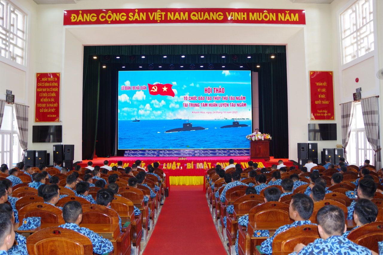 HQ Online - Ngày 24/10, tại phường Bắc Cam Ranh, tỉnh Khánh Hòa, Lữ đoàn 189 Hải quân tổ chức hội thảo chuyên đề tổ chức đào tạo thủy thủ tàu ngầm. Thượng tá Nguyễn Tiến Đoạt, Lữ đoàn trưởng chủ trì.