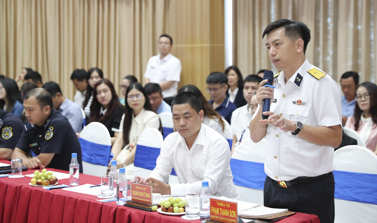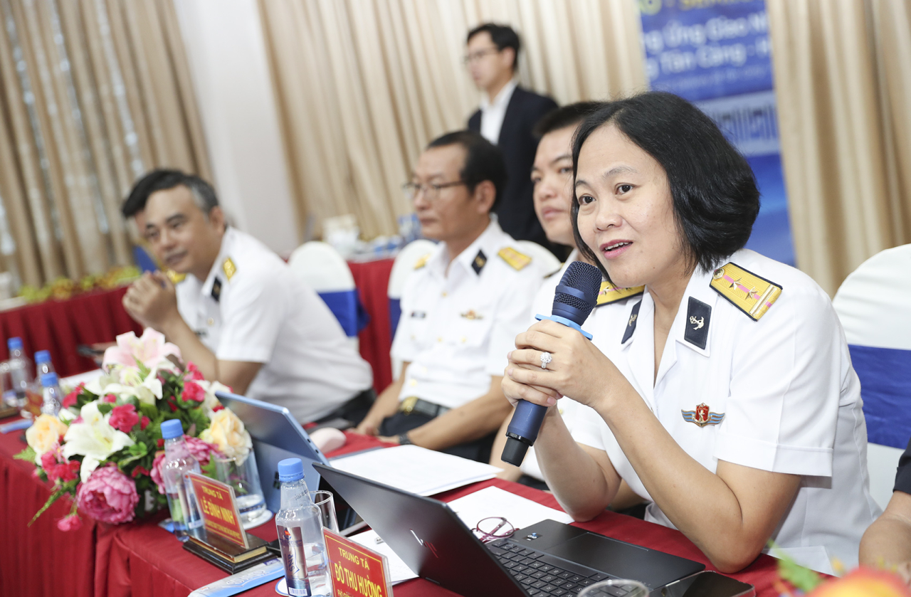 Trung tá QNCN Đỗ Thu Hường, Phó Giám đốc Marketing Tổng công ty Tân Cảng Sài Gòn chủ trì thảo luận