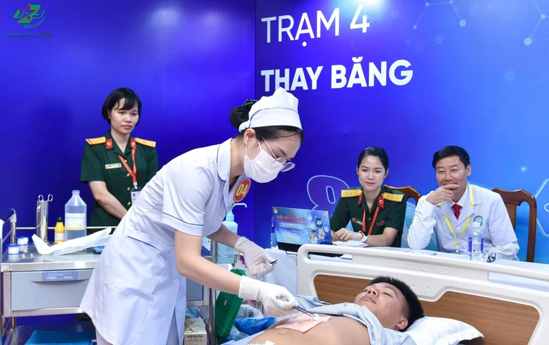 Theo đó, các thí sinh lần lượt tham gia thi trắc nghiệm trên hệ thống; xử trí các tình huống lâm sàng, thực hành kỹ thuật tại các trạm thi; trình diễn trang phục y tế, tác phong điều dưỡng, thể hiện kỹ năng giao tiếp, ứng xử; đồng thời xây dựng video clip tuyên truyền, giáo dục, lan tỏa hình ảnh người điều dưỡng quân y trong thời kỳ mới.