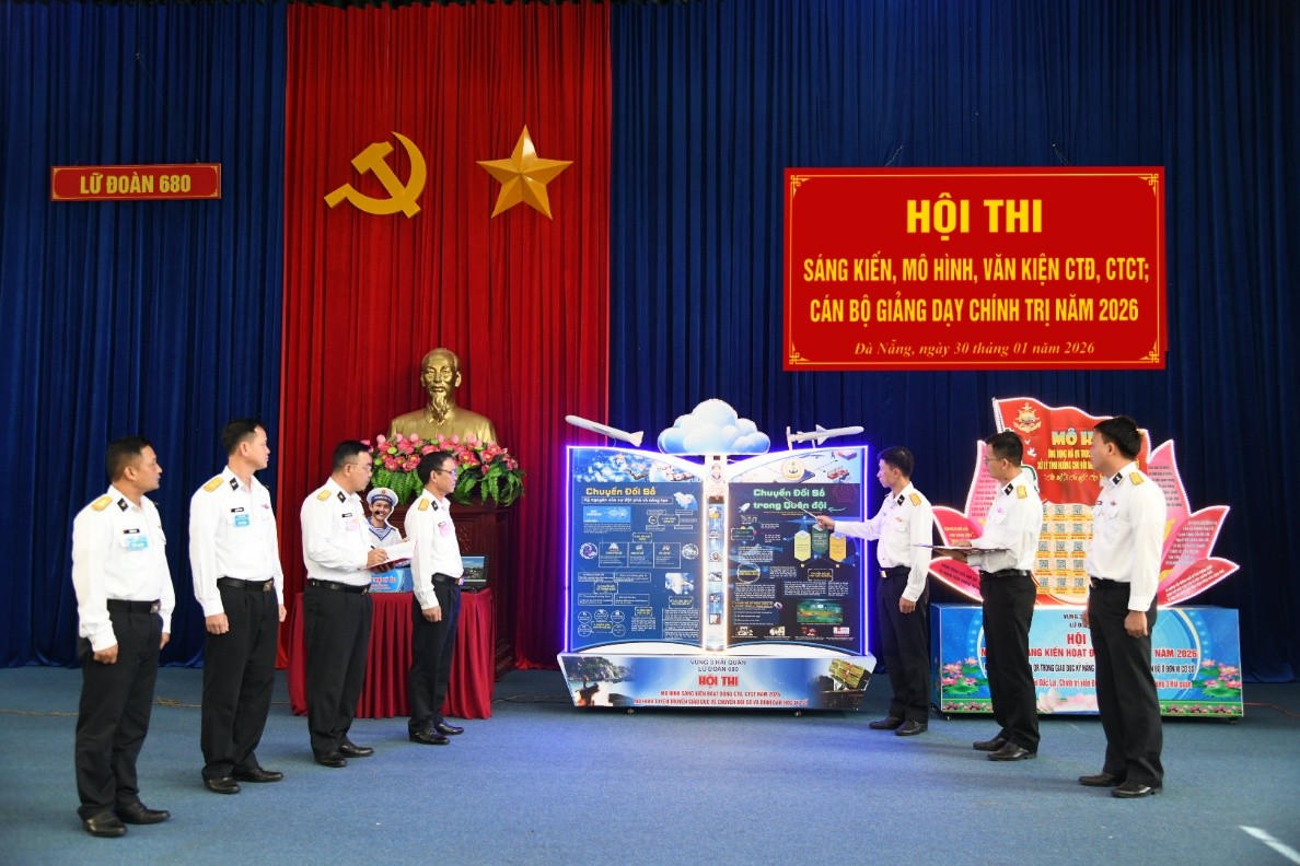 HQ Online - Ngày 30 và 31/1, tại TP. Đà Nẵng, Lữ đoàn 680, Vùng 3 Hải quân tổ chức Hội thi mô hình học cụ, sáng kiến cải tiến, phần mềm mô phỏng, phim huấn luyện; sổ sách công tác đảng, công tác chính trị (CTĐ, CTCT) và cán bộ giảng dạy chính trị năm 2026.