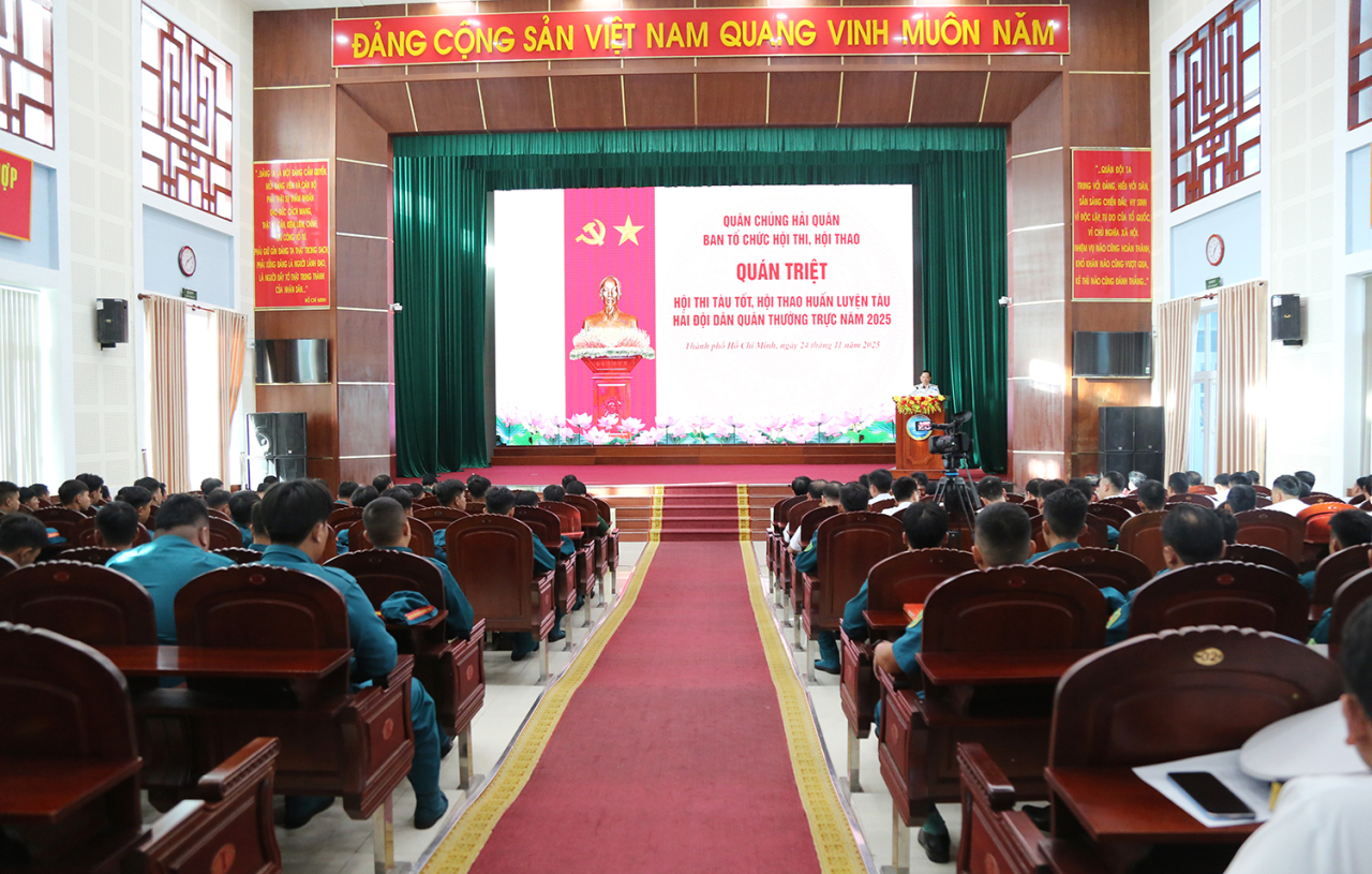 HQ Online - Sáng 24/11, tại phường Phước Thắng (TP Hồ Chí Minh), Quân chủng Hải quân tổ chức Hội thi tàu tốt, Hội thao huấn luyện tàu Hải đội dân quân thường trực (DQTT) năm 2025. Chuẩn Đô đốc Nguyễn Thiên Quân, Phó Tham mưu trưởng Quân chủng, Phó trưởng ban tổ chức chủ trì. Tham dự có đại biểu các cơ quan chức năng Bộ Quốc phòng, Bộ Tư lệnh Hải quân, đại diện các Quân khu và cán bộ, nhân viên Hải đội DQTT khu vực 3.