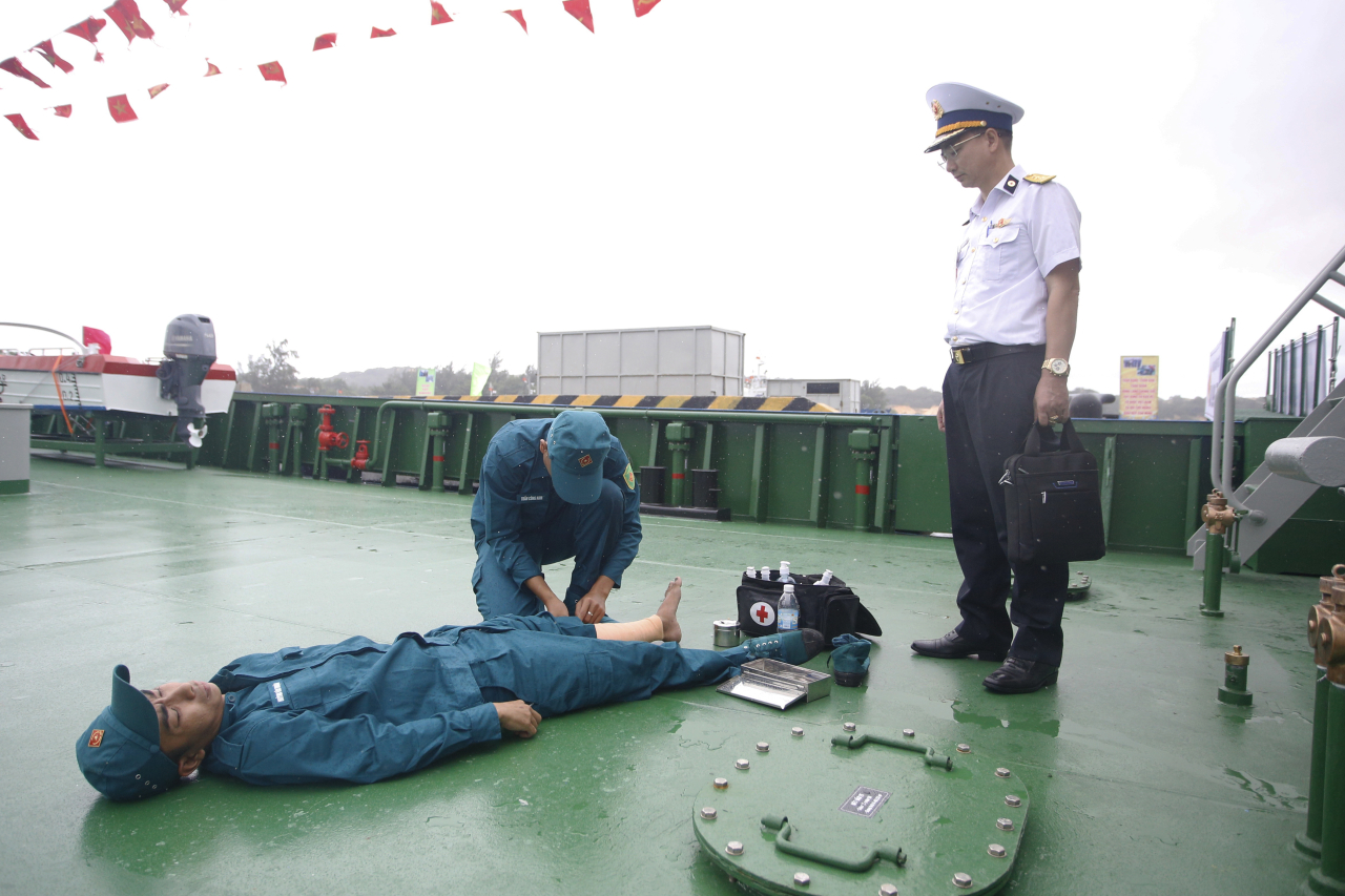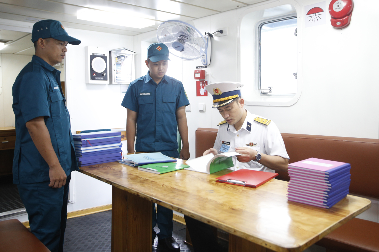 Ban giám khảo đã tiến hành kiểm tra lý thuyết và thực hành thao tác; kiểm tra tại bến và trên biển; kiểm tra việc thao tác toàn tàu đến từng ngành và từng vị trí.