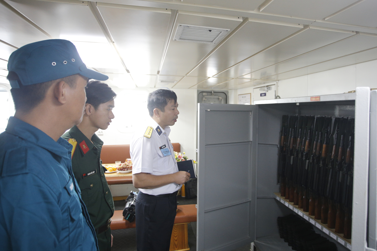 Thành viên Ban giám khảo kiểm tra vũ khí trang bị kỹ thuật trên tàu