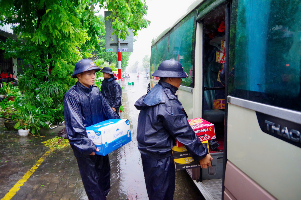 Mặc dù thời tiết mưa to, cán bộ, chiến sĩ Lữ đoàn 172, Vùng 3 Hải quân vẫn nỗ lực chuẩn bị lương thực, thực phẩm, khẩn trương cơ động giúp nhân dân phường Hội An (thành phố Đà Nẵng) khắc phục hậu quả mưa lũ