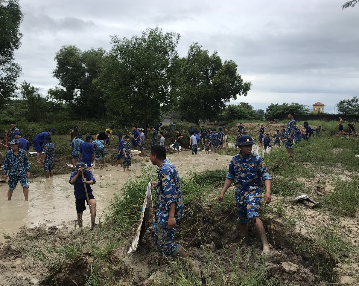 HQ Online - Ngày 14 và 15/11, tại Cam Ranh, Khánh Hòa, Đoàn cơ sở Kho 858, Cục Kỹ thuật Hải quân đã huy động hơn 120 lượt cán bộ, đoàn viên thanh niên tham gia khắc phục hậu quả do mưa kéo dài.