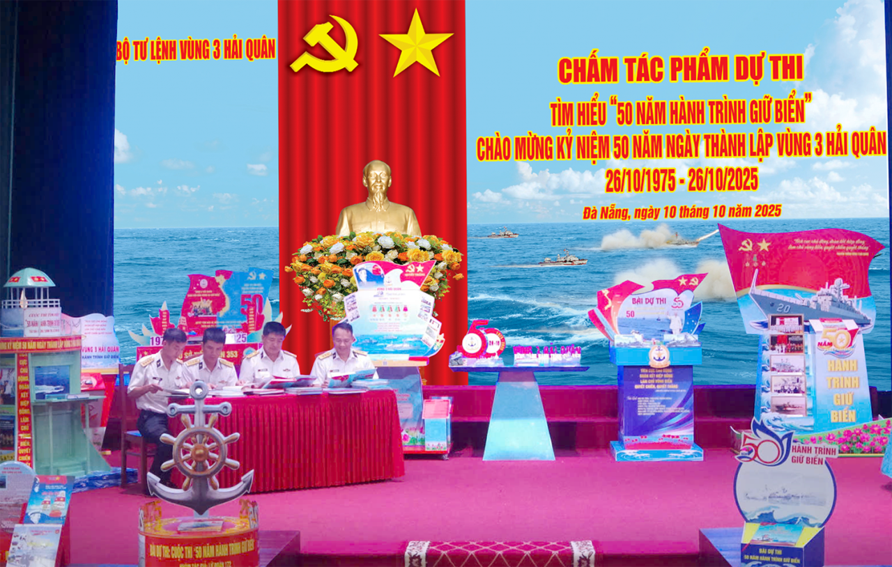 HQ Online - Ngày 10/10, tại TP Đà Nẵng, Vùng 3 Hải quân tổ chức chấm bài dự thi tìm hiểu “50 năm hành trình giữ biển”. Đại tá Nguyễn Quang Vinh, Phó Chủ nhiệm Chính trị Vùng chủ trì.