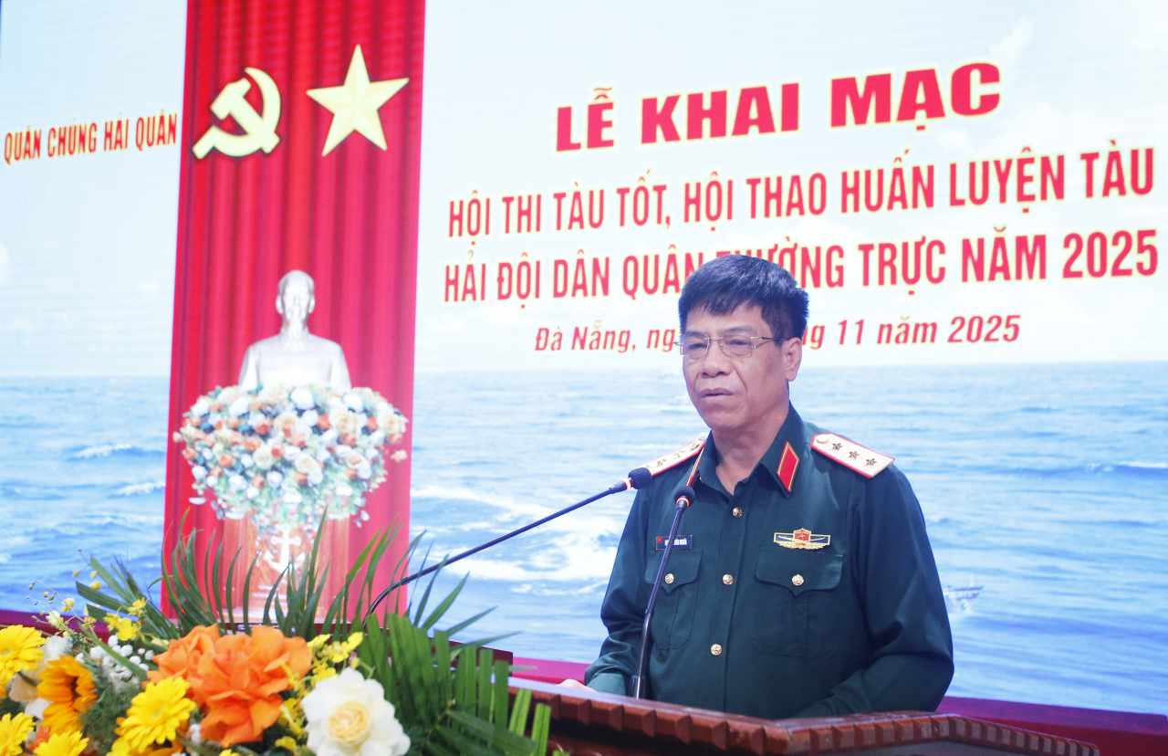 HQ Online - Sáng 17/11, tại Bộ Tư lệnh Vùng 3 Hải quân (TP.Đà Nẵng), Quân chủng Hải quân phối hợp với các Quân khu 4, 5, 7, 9 tổ chức khai mạc Hội thi tàu tốt, Hội thao huấn luyện tàu Hải đội Dân quân thường trực (DQTT) năm 2025. Thượng tướng Nguyễn Văn Nghĩa, Phó Tổng Tham mưu trưởng Quân đội nhân dân Việt Nam dự và chỉ đạo.