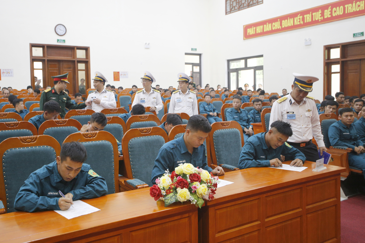 Cán bộ, chiến sĩ DQTT thực hiện phần thi lý thuyết chuyên ngành