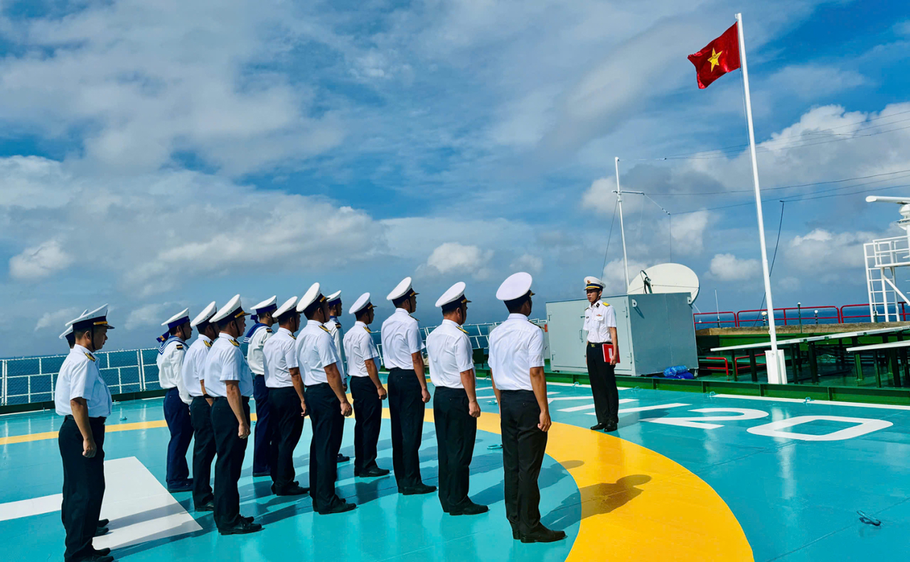 Sáng ngày đầu tiên của năm mới, toàn thể cán bộ, chiến sĩ có mặt đông đủ, quân phục chỉnh tề, đội ngũ nghiêm trang, khi Quốc ca vang lên hùng tráng, mỗi cán bộ, chiến sĩ đều bày tỏ niềm tự hào, ý thức rõ trách nhiệm của người quân nhân cách mạng trong sự nghiệp xây dựng và bảo vệ vững chắc chủ quyền biển đảo thiêng liêng của Tổ quốc.