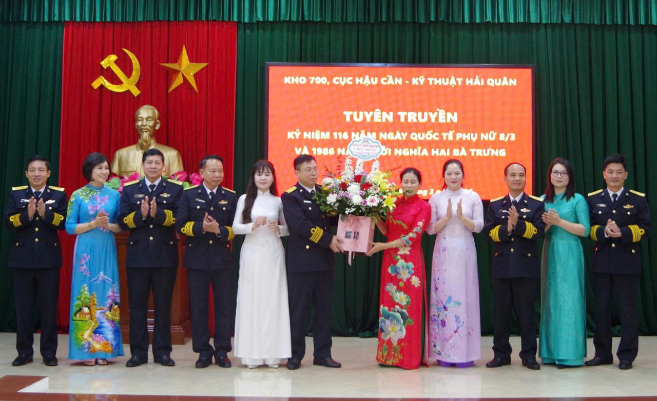 HQ Online - Nhân dịp kỷ niệm Ngày quốc tế Phụ nữ 8/3, sáng 6/3, tại Hải Phòng, Kho 700 (Cục Hậu cần -Kỹ thuật Hải quân) tổ chức tuyên truyền kỷ niệm 116 Ngày quốc tế phụ nữ 8/3 và gặp mặt cán bộ, hội viên Hội phụ nữ trong đơn vị. Tham dự buổi gặp mặt có thủ trưởng Kho, đại biểu Phòng Chính trị Cục Hậu cần-Kỹ thuật cùng toàn thể cán bộ, hội viên phụ nữ.