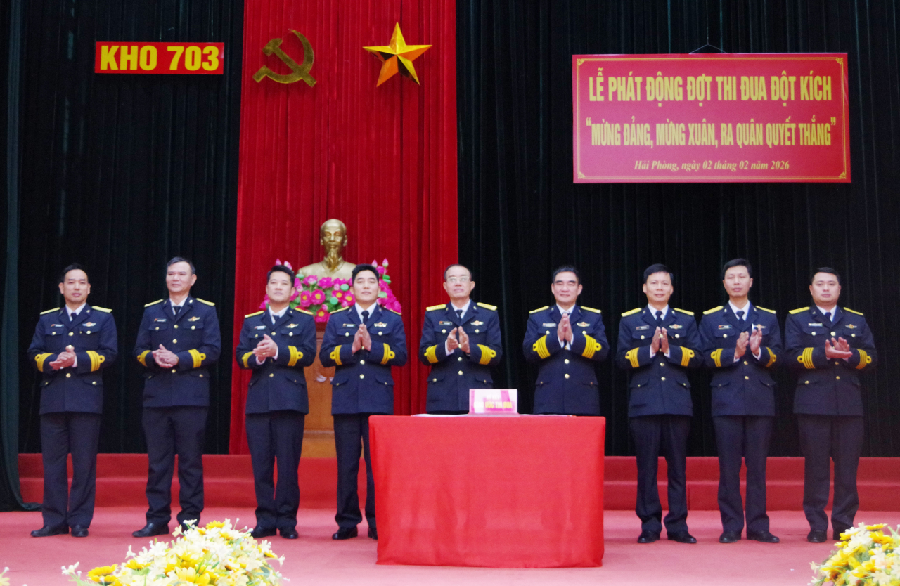 HQ Online - Sáng 2/2, tại TP. Hải Phòng, Kho 703, Vùng 1 Hải quân tổ chức Lễ phát động đợt thi đua đột kích chào mừng kỷ niệm 96 năm Ngày thành lập Đảng Cộng sản Việt Nam, chào đón xuân Bính Ngọ và chuẩn bị ra quân huấn luyện năm 2026 với chủ đề “Mừng Đảng, mừng Xuân, ra quân quyết thắng”.