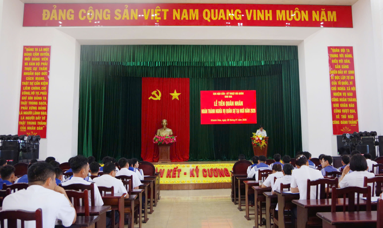 HQ Online - Sáng 28/1, tại phường Bắc Cam Ranh, tỉnh Khánh Hoà, Kho 858, Cục Hậu cần - Kỹ thuật Hải quân tổ chức lễ tiễn quân nhân hoàn thành nghĩa vụ quân sự năm 2026.