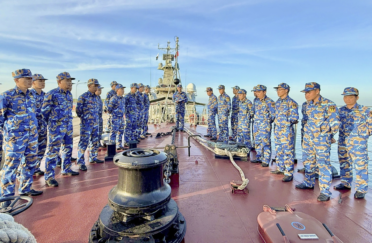 Đội hình tàu neo đậu tại cảng hôm nay được khoác lên mình tấm áo mới với băng cờ, khẩu hiệu rực rỡ. Không khí thi đua huấn luyện bắt đầu nóng lên khi tiếng khẩu lệnh hô vang từ vị trí chỉ huy của mỗi con tàu. Những bước chân di chuyển thoăn thoắt trên boong tàu, những đôi tay thao tác chuẩn xác và tự tin trên từng vũ trang bị kỹ thuật. Tất cả như muốn khẳng định sự “khởi động” vững chắc của một mùa huấn luyện mới ở đơn vị.