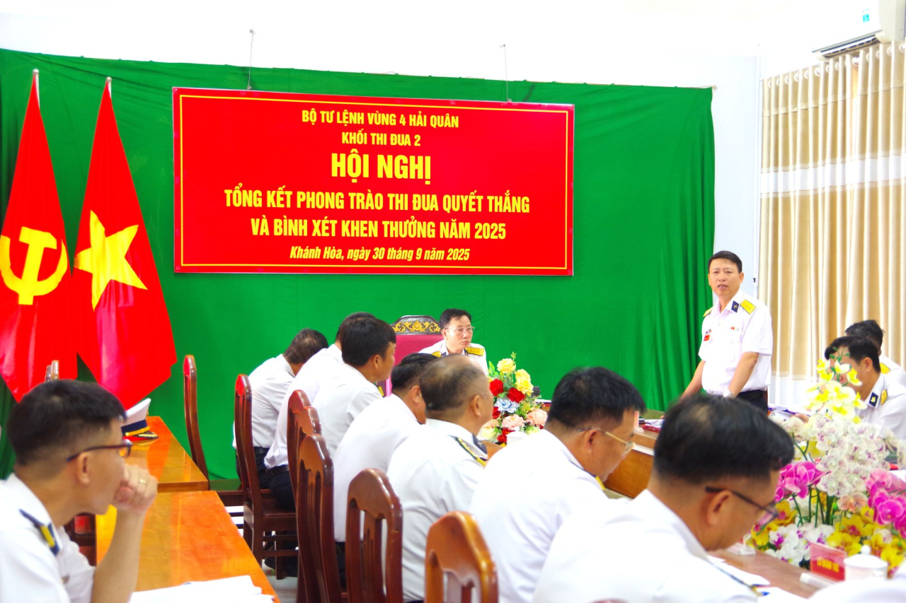 HQ Online - Sáng 30/9, tại Khánh Hòa, khối thi đua các đơn vị cấp trung, lữ đoàn và tương đương (khối thi đua 2) của Vùng 4 Hải quân tổ chức tổng kết phong trào thi đua quyết thắng và bình xét khen thưởng năm 2025.
