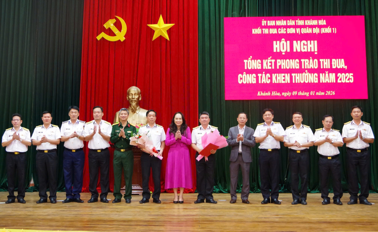 HQ Online - Chiều 9/1, tại Kho 858 (phường Bắc Cam Ranh, Khánh Hòa), Khối thi đua 1 các đơn vị Quân đội trên địa bàn tỉnh Khánh Hòa đã tổ chức Hội nghị tổng kết phong trào thi đua, công tác khen thưởng năm 2025.