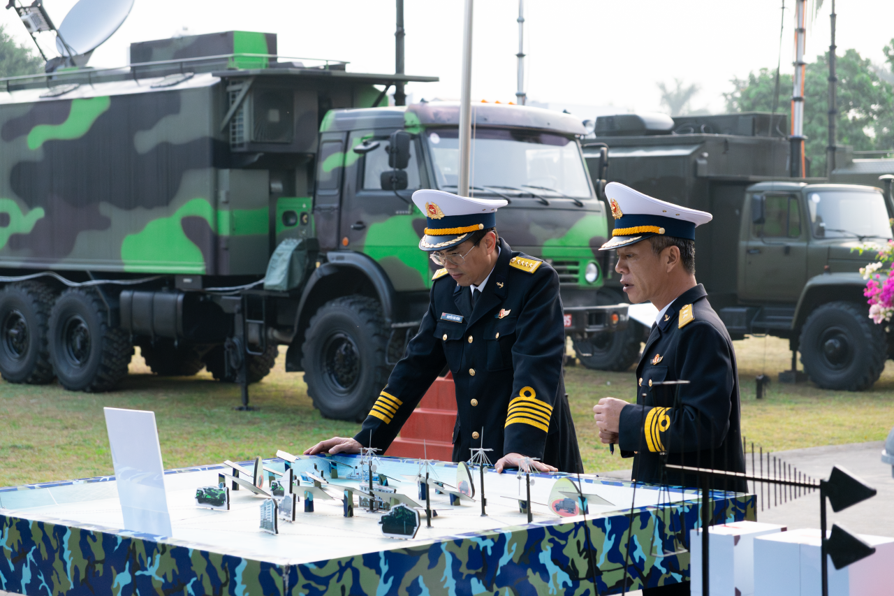 Đồng chí Phó Tham mưu trưởng Quân chủng kiểm tra mô hình huấn luyện tại đơn vị