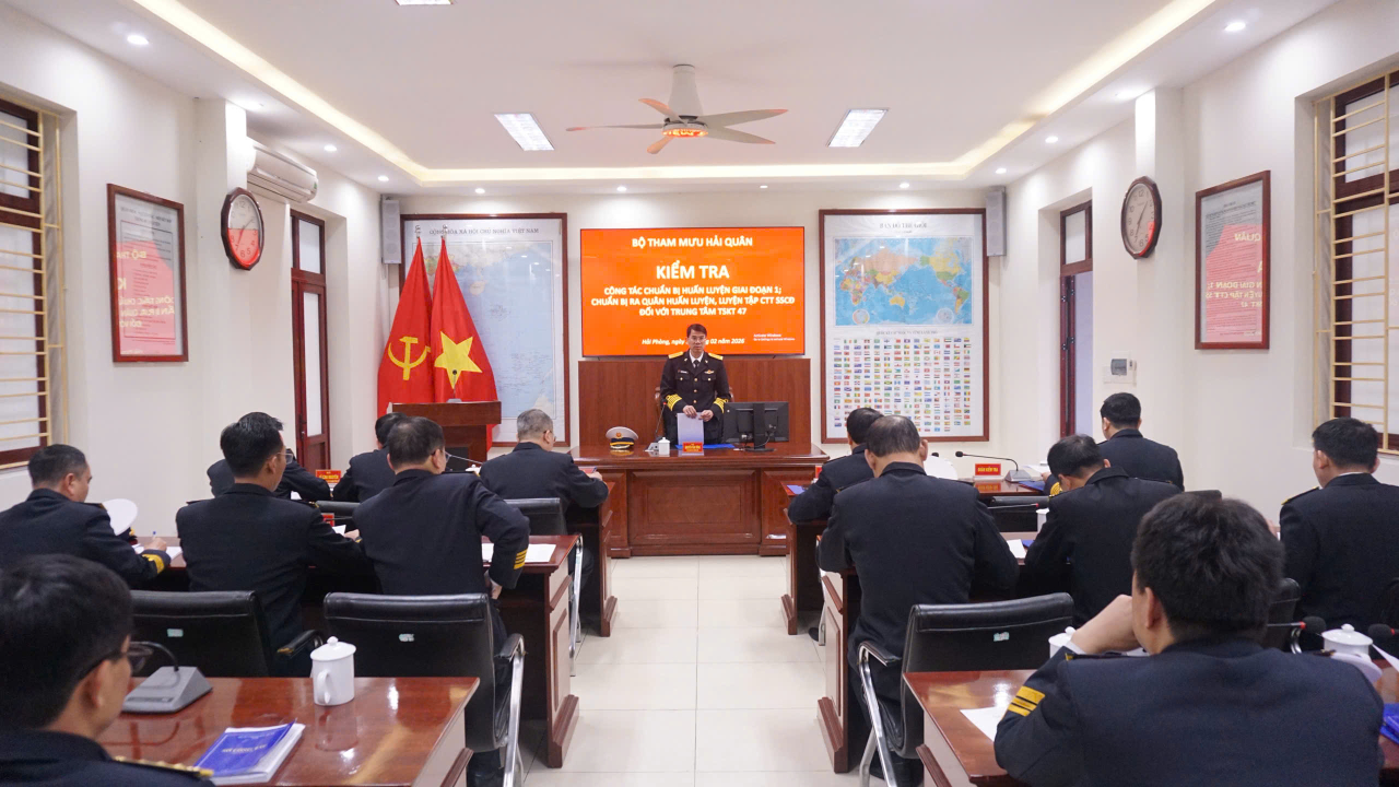 HQ Online - Sáng 10/2, tại Hải Phòng, đoàn công tác của Bộ Tham mưu Hải quân do Đại tá Nguyễn Văn Đồng, Phó Tham mưu trưởng Quân chủng làm trưởng đoàn đã tiến hành kiểm tra công tác chuẩn bị ra quân huấn luyện năm 2026 tại Trung tâm 47.