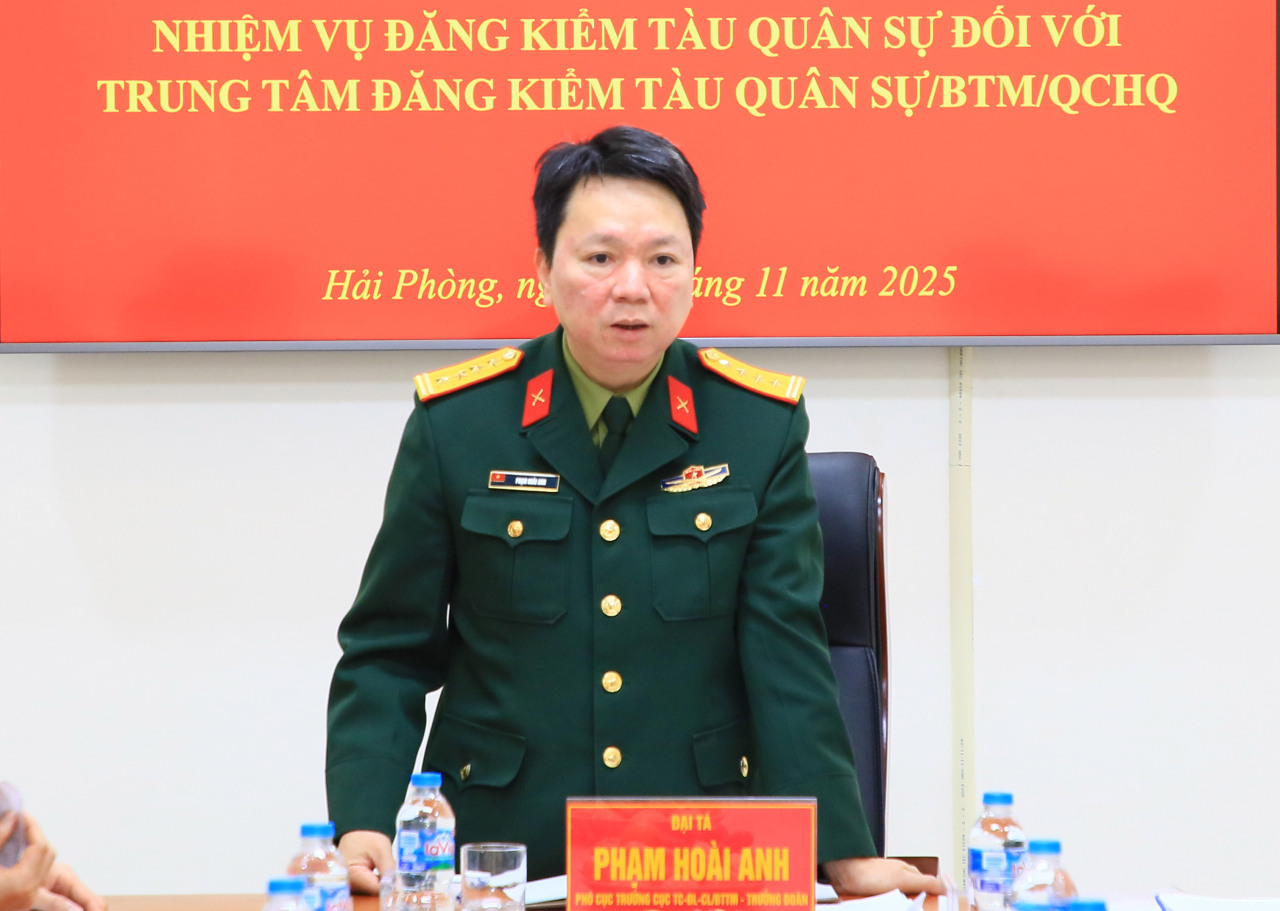 HQ Online - Ngày 28/11, tại Hải Phòng, đoàn kiểm tra của Cục Tiêu chuẩn – Đo lường – Chất lượng (TC-ĐL-CL), Bộ Tổng Tham mưu đã kiểm tra kết quả thực hiện nhiệm vụ đăng kiểm tàu quân sự năm 2025 của Trung tâm Đăng kiểm tàu quân sự, Bộ Tham mưu Hải quân. Đại tá Phạm Hoài Anh, Phó Cục trưởng Cục TC-ĐL-CL làm trưởng đoàn.