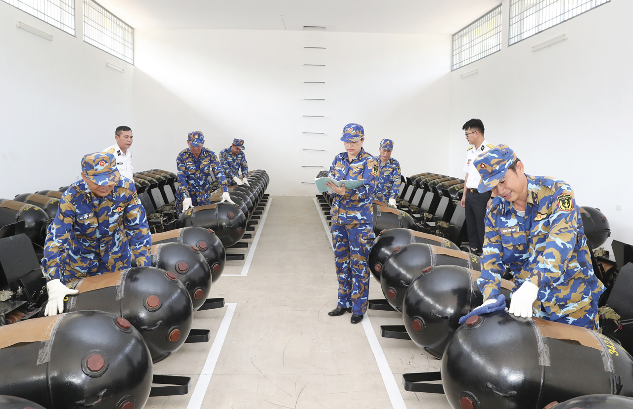 Cán bộ, đoàn viên tích cực tham gia bảo quản, bảo dưỡng VKTB tại các kho của đơn vị