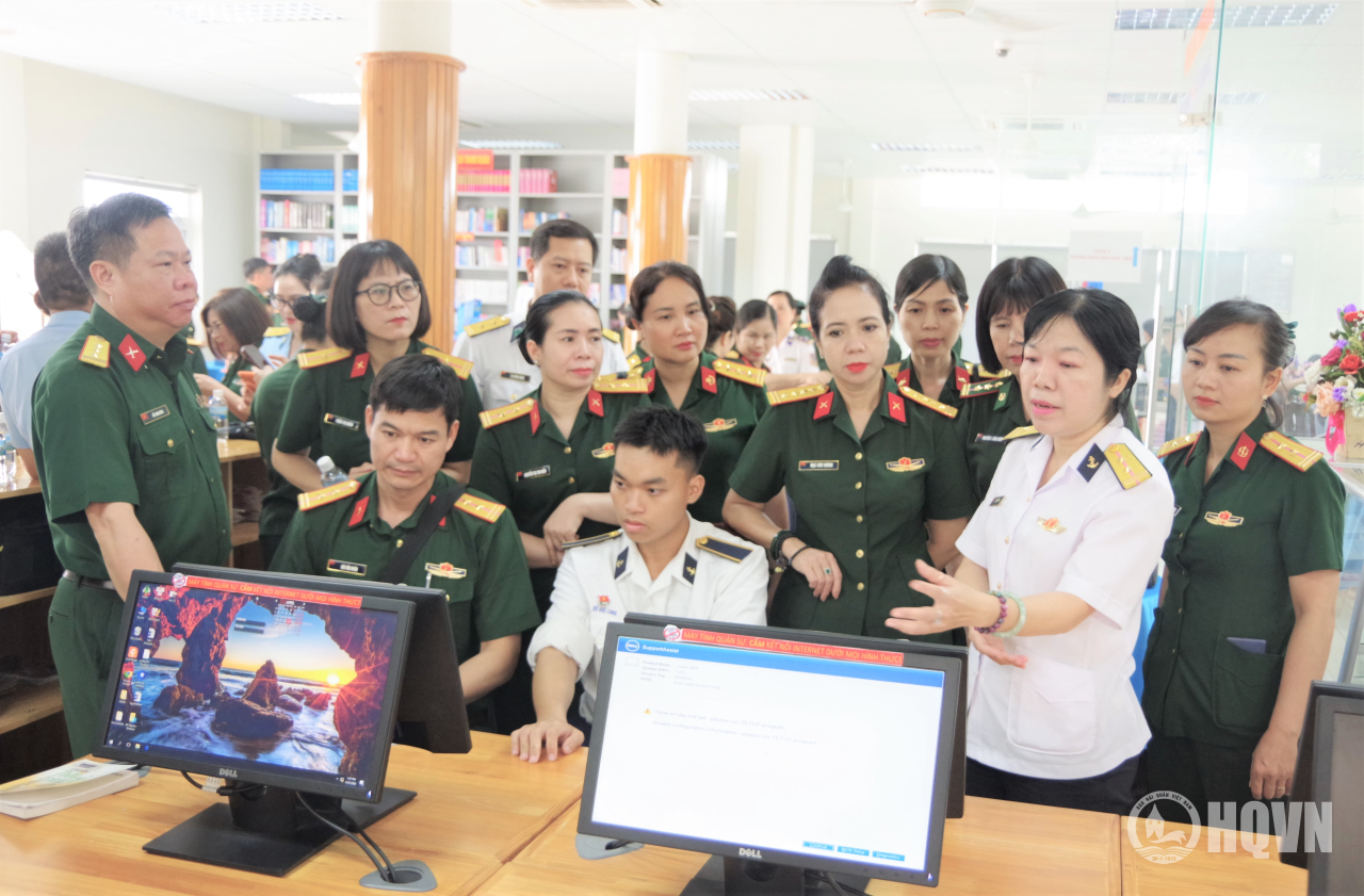 HQ Online - Trong khuôn khổ các hoạt động của Hội nghị tập huấn công tác nghiệp vụ thư viện toàn quân năm 2026 diễn ra tại phường Nha Trang, tỉnh Khánh Hoà từ ngày 21 đến 24/4, lớp tập huấn đã đến thăm và trao đổi kinh nghiệm tại Học viện Hải quân.