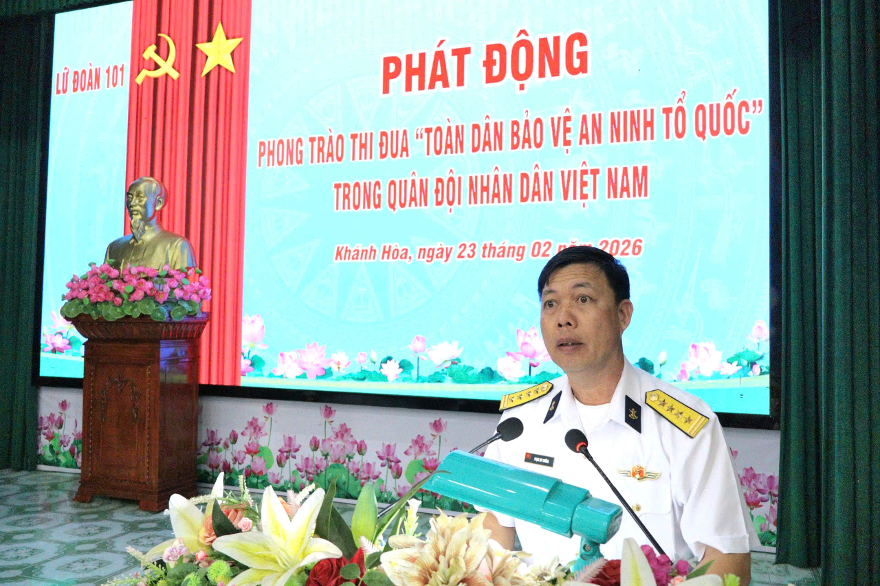 HQ Online - Tối 23/2, tại Khánh Hòa, Lữ đoàn 101, Vùng 4 Hải quân tổ chức Lễ phát động phong trào thi đua “Toàn dân bảo vệ an ninh Tổ quốc” trong Quân đội nhân dân Việt Nam. Đại tá Phạm Duy Hướng, Bí thư Đảng ủy, Chính ủy, Chủ tịch Hội đồng thi đua - khen thưởng Lữ đoàn chủ trì.