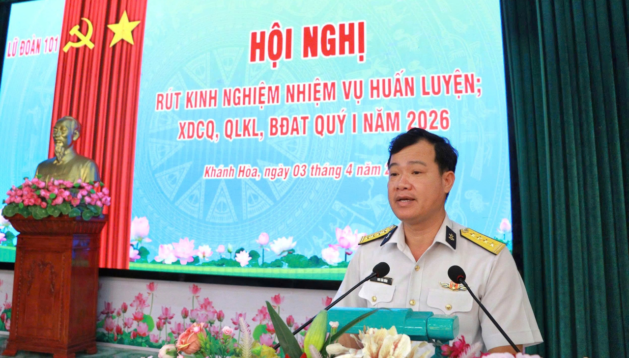 HQ Online - Sáng 3/4, tại xã Cam Lâm, tỉnh Khánh Hòa, Lữ đoàn 101 (Vùng 4 Hải quân) tổ chức Hội nghị rút kinh nghiệm nhiệm vụ huấn luyện, xây dựng chính quy, quản lý kỷ luật, bảo đảm an toàn quý I năm 2026. Đại tá Ngô Văn Hưng, Lữ đoàn trưởng chủ trì.