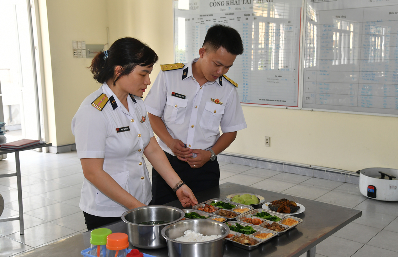 Tại buổi kiểm tra, đoàn công tác của Vùng đã tập trung đánh giá thực chất chất lượng nuôi quân thông qua việc chế biến bữa ăn chính theo thực đơn mẫu từ nguồn thực phẩm cung ứng hợp đồng khách quan, đảm bảo đúng định lượng và vệ sinh an toàn thực phẩm. Song song đó, đoàn rà soát kỹ lưỡng hệ thống sổ sách chuyên môn, văn kiện sẵn sàng chiến đấu và việc duy trì các nề nếp nhà ăn như chế độ bàn giao tay ba, lưu nghiệm thức ăn…
