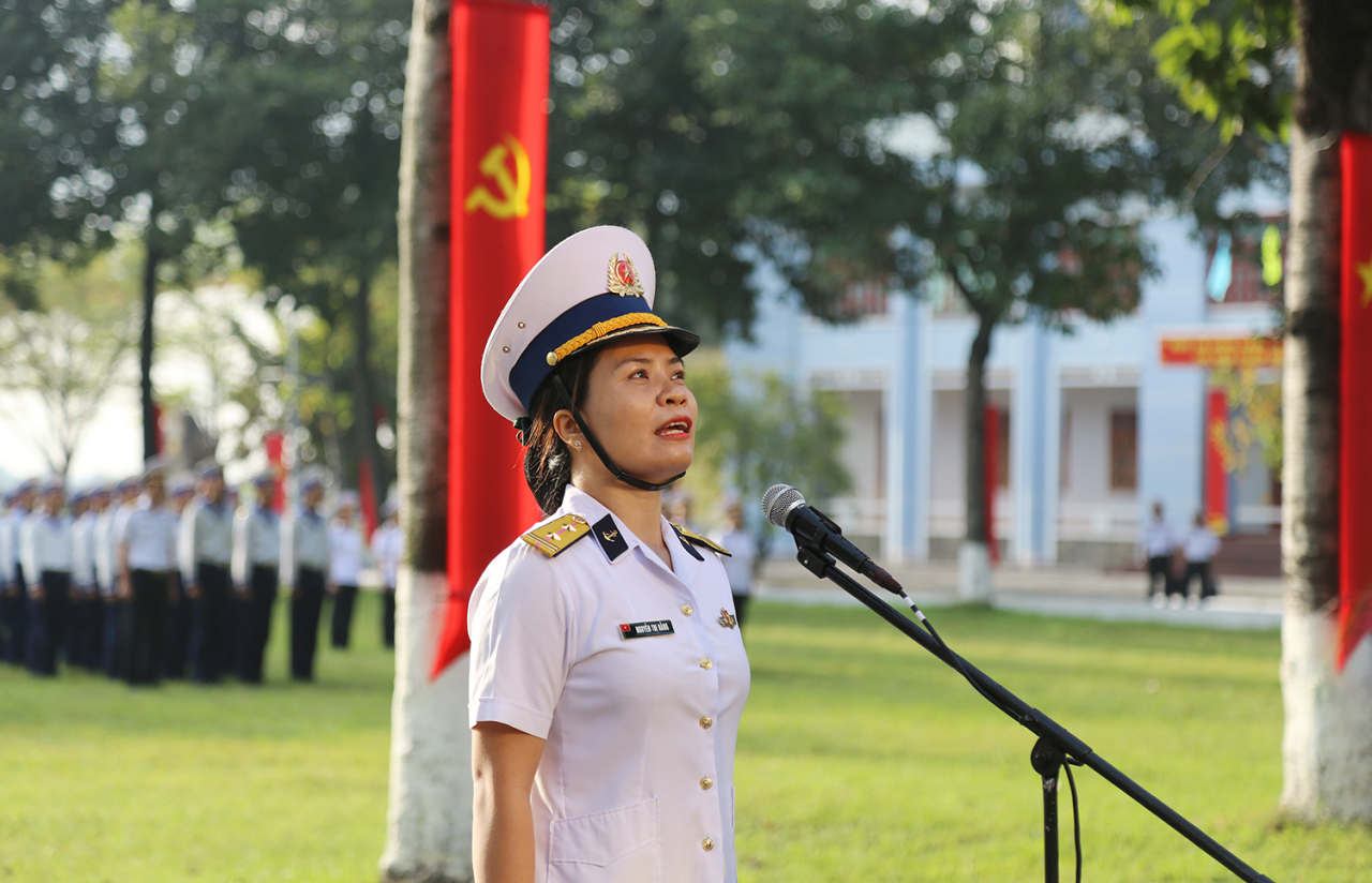 Trung tá quân nhân chuyên nghiệp Nguyễn Thị Hằng, Nhân viên Phòng Chính trị đọc 10 lời thề