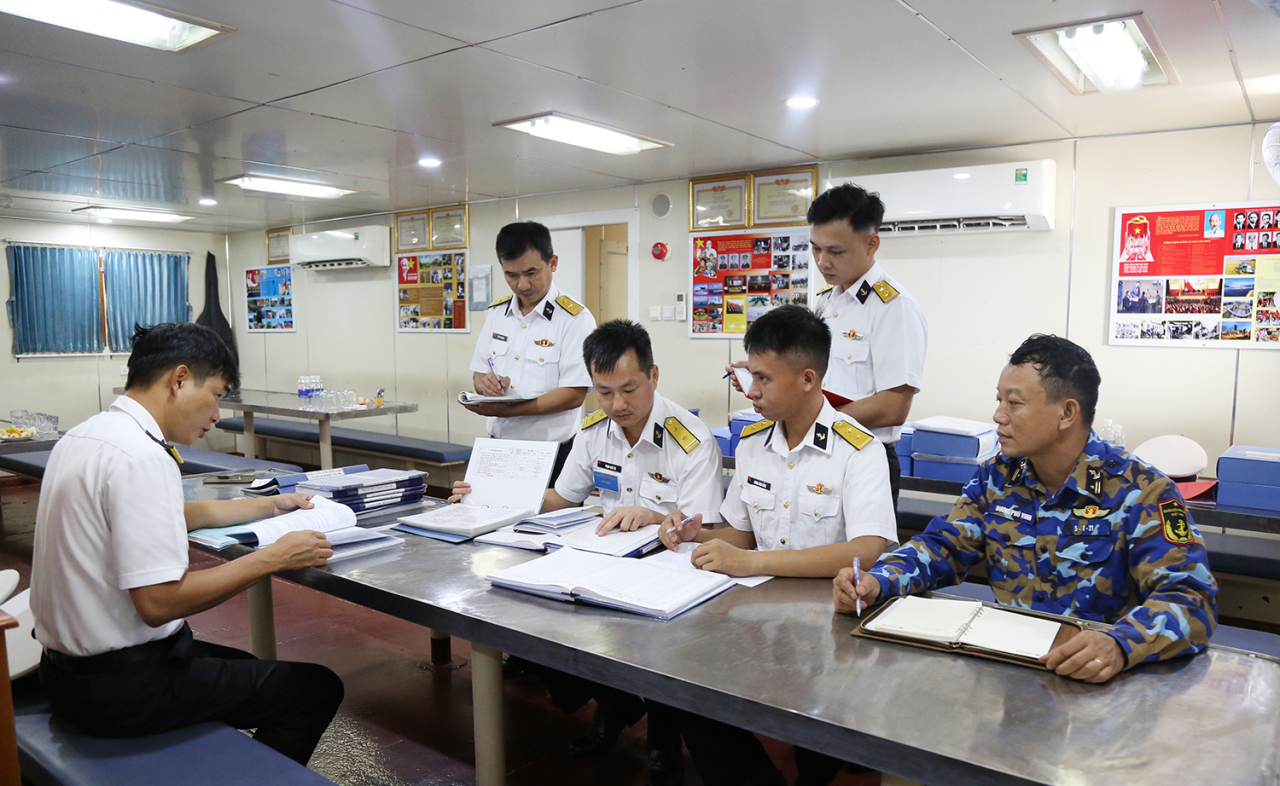 Đoàn kiểm tra sổ sách công tác kỹ thuật trên tàu