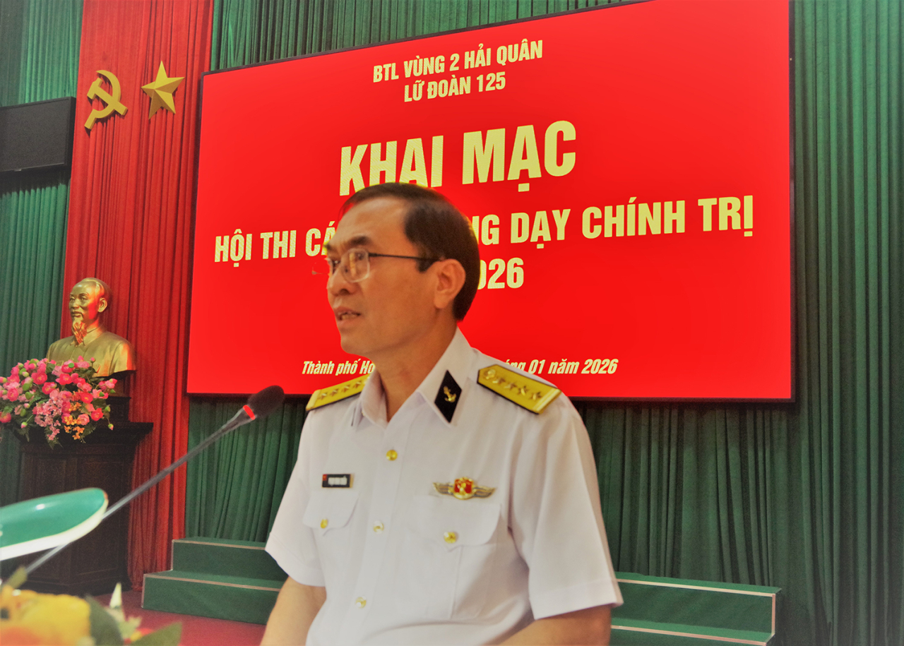 HQ Online - Sáng 29/1, tại TP. Hồ Chí Minh, Lữ đoàn 125, Vùng 2 Hải quân tổ chức khai mạc Hội thi cán bộ giảng dạy chính trị năm 2026. Đại tá Phạm Minh Chiến, Bí thư Đảng ủy, Chính ủy Lữ đoàn dự, chỉ đạo. Tham dự khai mạc có các đồng chí trong Đảng ủy, chỉ huy Lữ đoàn; cấp ủy, chỉ huy các cơ quan, đơn vị trực thuộc và 19 thí sinh dự thi.