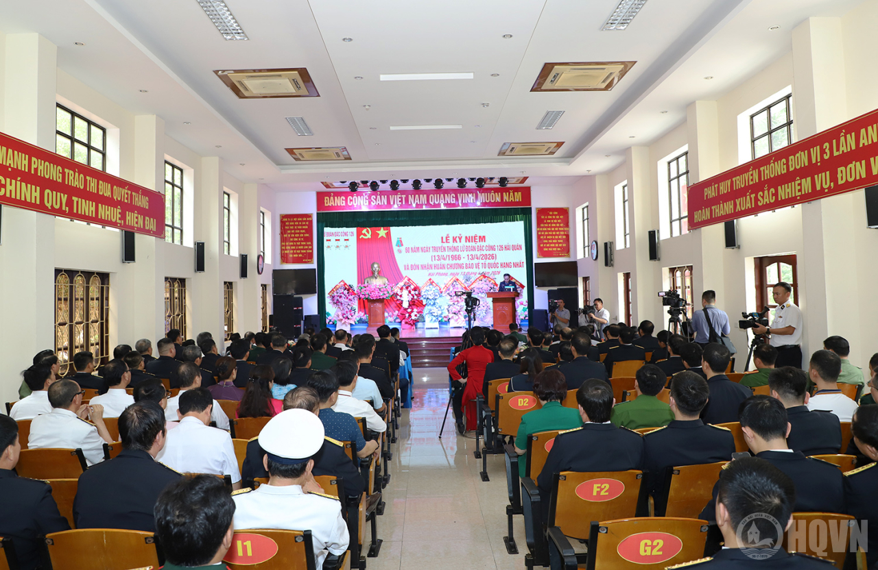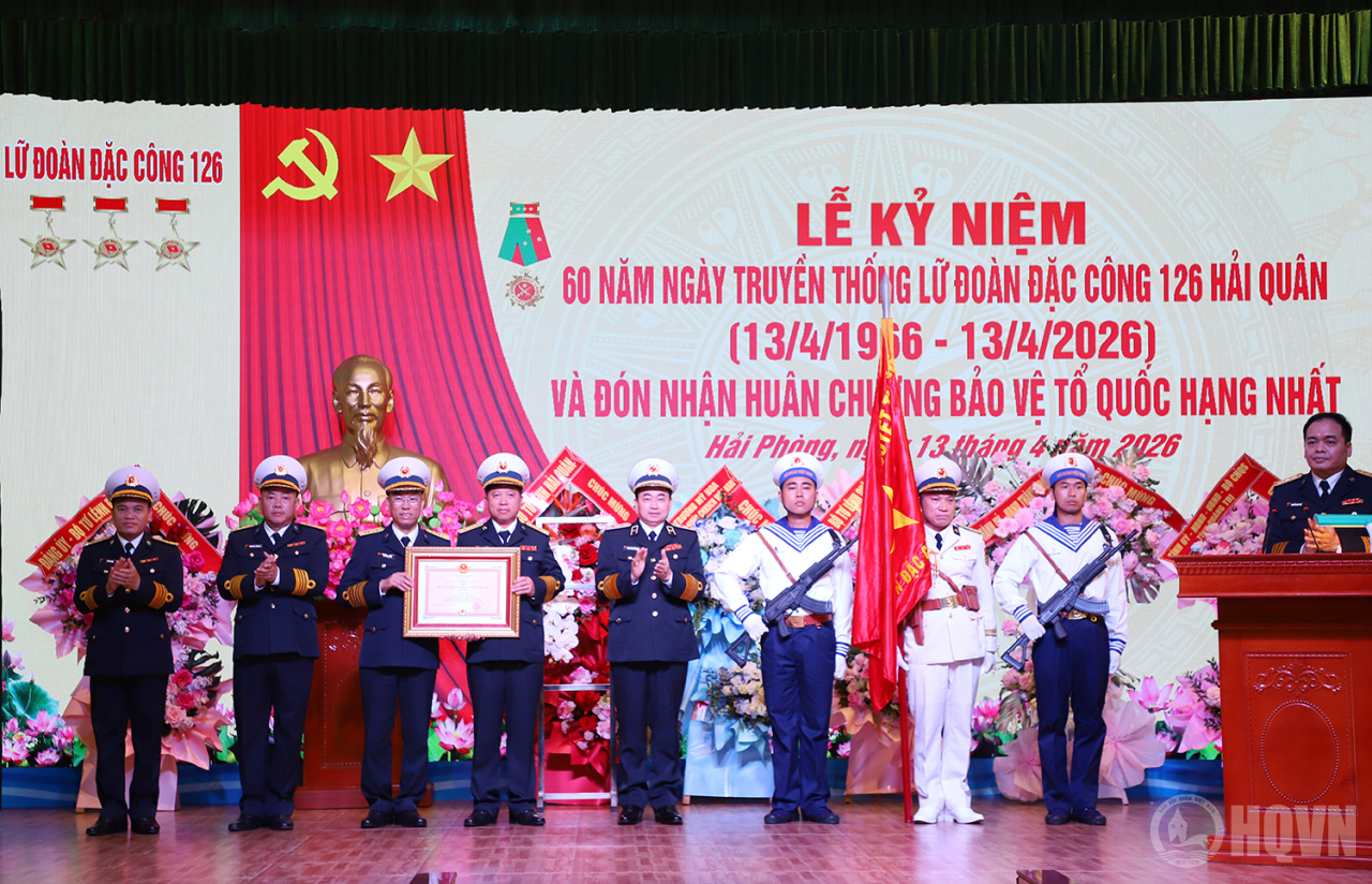 HQ Online - Sáng 13/4 tại phường Hòa Bình, TP. Hải Phòng, Lữ đoàn Đặc công Hải quân 126 tổ chức Lễ kỷ niệm 60 năm Ngày truyền thống (13/4/1966 - 13/4/2026) và đón nhận Huân chương Bảo vệ Tổ quốc hạng Nhất. Phó Đô đốc Trần Thanh Nghiêm, Ủy viên Trung ương Đảng, Tư lệnh Hải quân dự và phát biểu chỉ đạo.