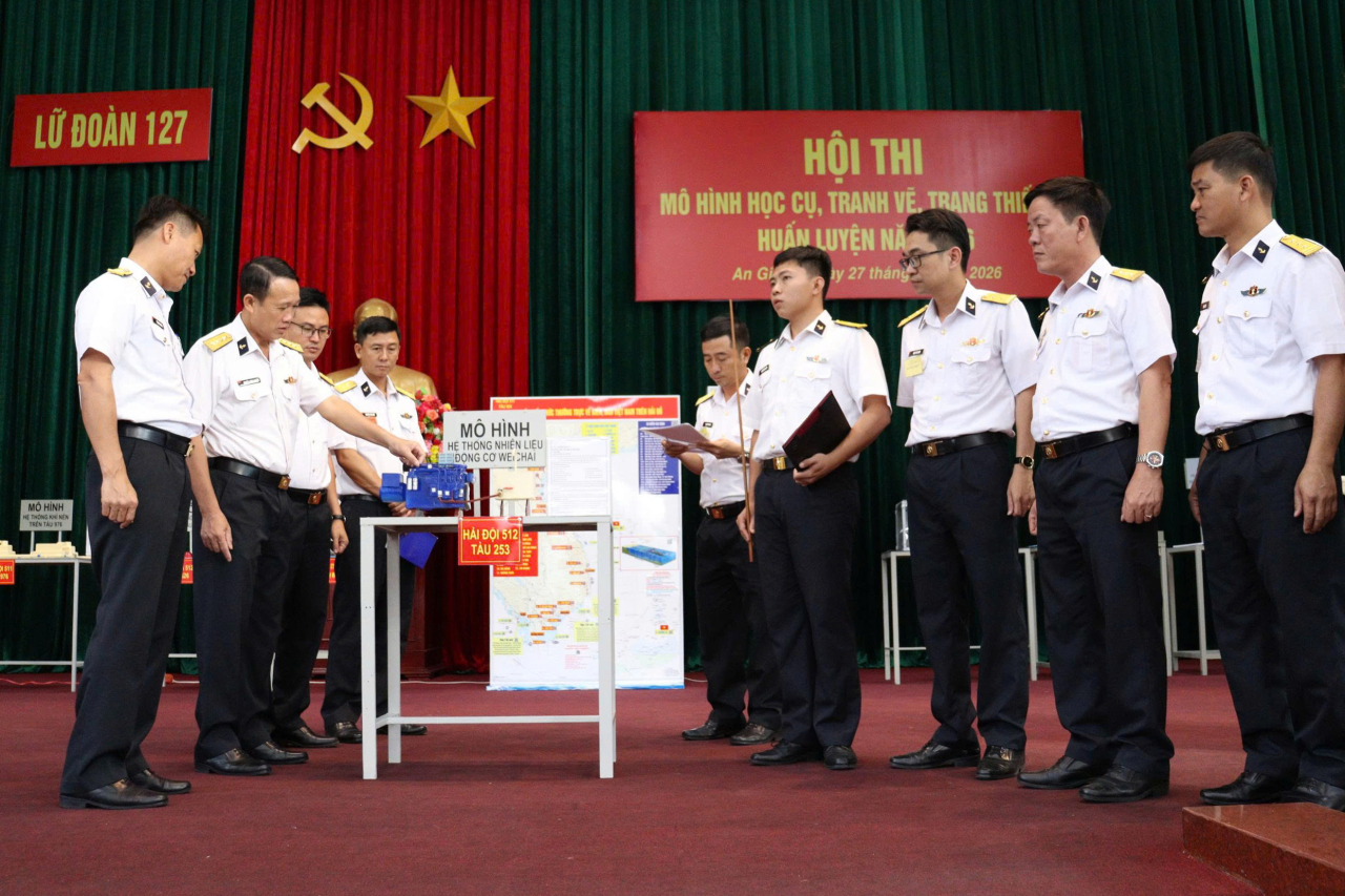 HQ Online - Ngày 26 và 27/1, tại đặc khu Phú Quốc, tỉnh An Giang, Lữ đoàn 127, Vùng 5 Hải quân tổ chức Hội thi mô hình học cụ, tranh vẽ, trang thiết bị huấn luyện năm 2026. Đại tá Phạm Lương Hào, Lữ đoàn trưởng dự và chỉ đạo. Cùng dự có Đại tá Nguyễn Lương Khuyên, Bí thư Đảng ủy, Chính ủy Lữ đoàn.