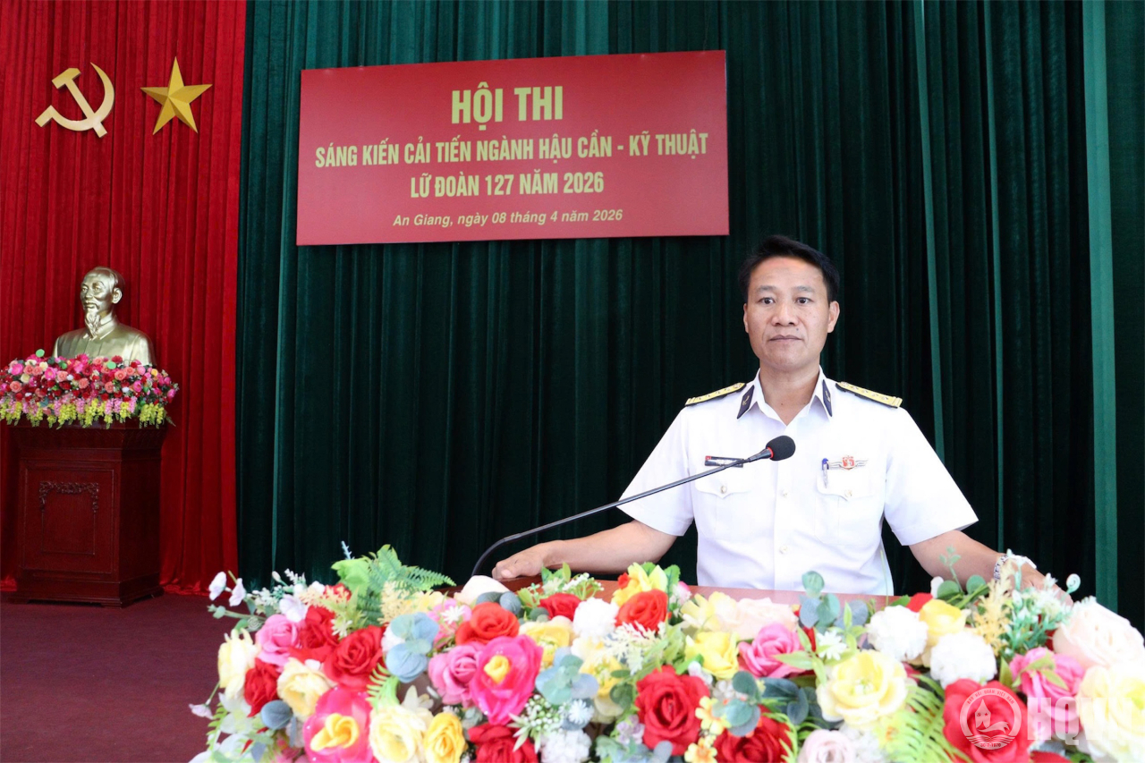 HQ Online - Ngày 8/4, tại đặc khu Phú Quốc, tỉnh An Giang, Lữ đoàn 127, Vùng 5 Hải quân tổ chức Hội thi sáng kiến cải tiến ngành hậu cần-kỹ thuật năm 2026. Đại tá Phạm Lương Hào, Lữ đoàn trưởng dự và chỉ đạo. Cùng dự có các đồng chí trong Đảng ủy, chỉ huy Lữ đoàn và các cơ quan, đơn vị.