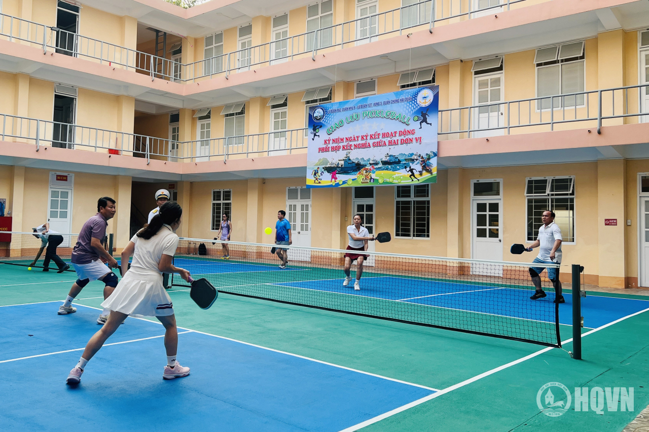 Trong khi đó, môn pickleball - một môn thể thao mới, dễ tiếp cận cũng diễn ra sôi nổi với nhiều pha bóng nhanh, khéo léo, tạo không khí vui tươi, phấn khởi, góp phần gắn kết giữa hai đơn vị.