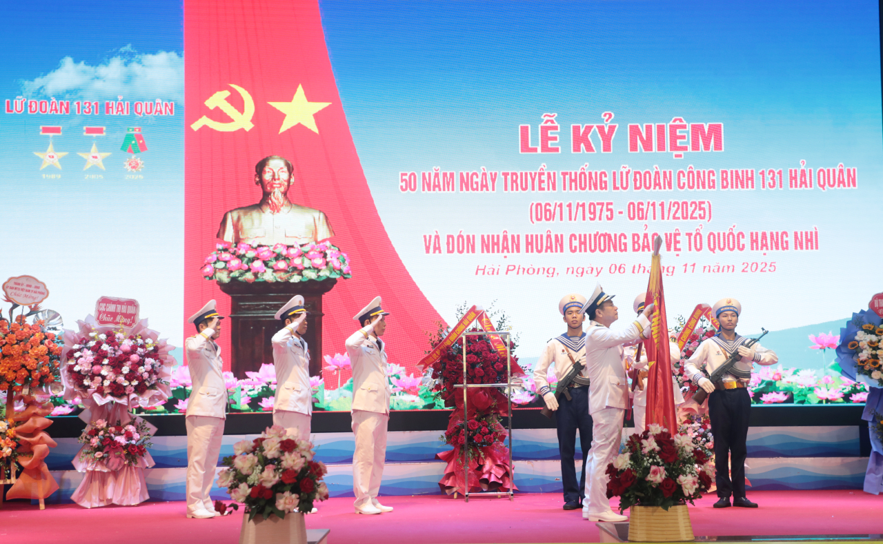 Dịp này, thừa ủy quyền của Chủ tịch nước, Chuẩn Đô đốc Lê Bá Quân trao Huân chương Bảo vệ Tổ quốc hạng Nhì tặng cán bộ, chiến sĩ Lữ đoàn Công binh 131 Hải quân.