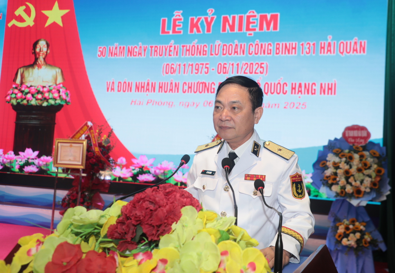 HQ Online - Sáng 6/11, tại Hải Phòng, Lữ đoàn Công binh 131 Hải quân tổ chức Lễ kỷ niệm 50 năm Ngày truyền thống và đón nhận Huân chương Bảo vệ Tổ quốc hạng Nhì. Chuẩn Đô đốc Lê Bá Quân, Phó Tư lệnh Hải quân dự và phát biểu chỉ đạo.