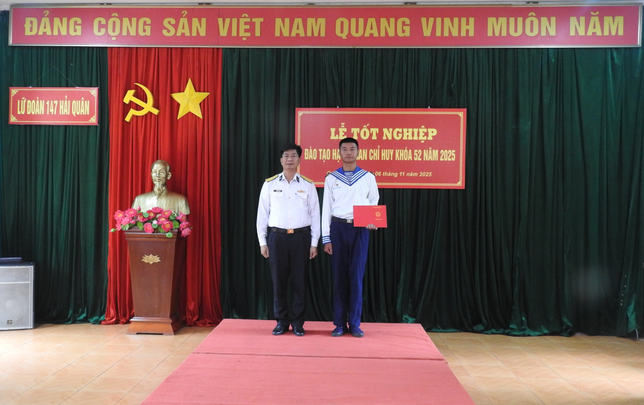 HQ Online - Ngày 6/11, tại phường Tuần Châu, tỉnh Quảng Ninh, Lữ đoàn 147, Vùng 1 Hải quân tổ chức Lễ tốt nghiệp đào tạo hạ sĩ quan chỉ huy khóa 52. Thượng tá Nguyễn Văn Huệ, Phó Lữ đoàn trưởng chủ trì.