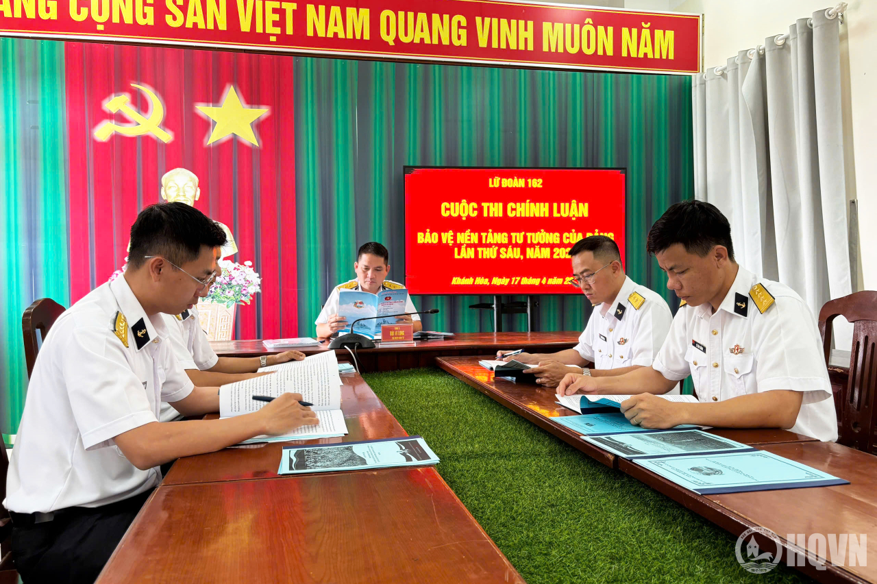 HQ Online - Chiều 17/4, tại phường Bắc Cam Ranh, tỉnh Khánh Hoà, Lữ đoàn 162, Vùng 4 Hải quân tổ chức chấm điểm các tác phẩm dự thi cuộc thi chính luận về bảo vệ nền tảng tư tưởng của Đảng lần thứ VI, năm 2026.
