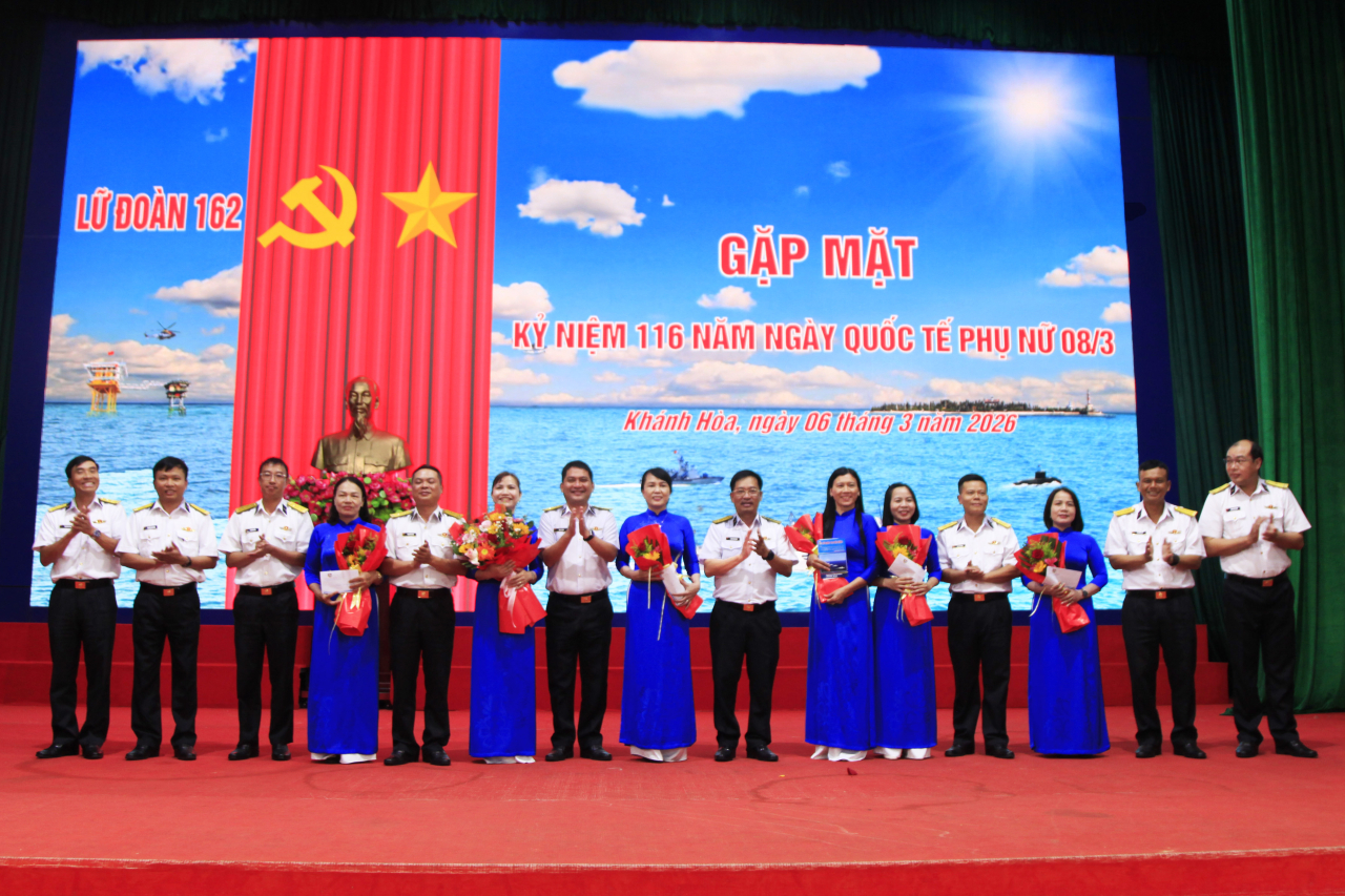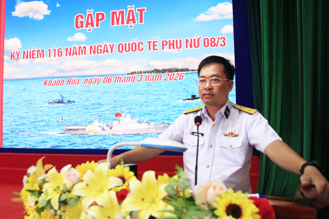 HQ Online - Sáng 6/3, tại phường Bắc Cam Ranh, tỉnh Khánh Hoà, Lữ đoàn 162, Vùng 4 Hải quân tổ chức gặp mặt hội viên phụ nữ đang công tác tại đơn vị nhân kỷ niệm 116 năm Ngày quốc tế phụ nữ và 1986 năm khởi nghĩa Hai Bà Trưng. Đại tá Mai Văn Doanh, Bí thư Đảng ủy, Chính ủy Lữ đoàn dự, chủ trì.