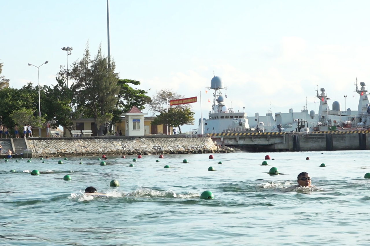 Kiểm tra bơi biển 1.500 mét đối với cán bộ, chiến sĩ